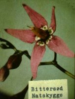 Bittersød natskygge, sort natskygge, bukketorn, kartoffel. De stærke: Pigæble, galnebær, bulmeurt, alrune. | |