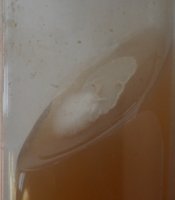 hvor meget den er fortyndet, så der er risiko for at væsken i de injektionssprøjter man køber er med homaeopatisk, dvs. med alt for lille, mængde af sporer i, eller sågar det rene vand. Først podes kornmediet, her er det smart at komme mediet i et syltetøjsglas med låg hvor man i forvejen har boret eller sømmet nogle (f.eks. 4) små huller i låget. Kom et stykke sølvpapir over låget og fæsten det med en elastik, og prik nogle (4) bittesmå huller i sølvpapiret over hullerne i låget, det er til trykudligneng når mediet steriliseres. En trykkoger er en god ting til steriliseringen men ikke strengt nødvandig. Når mediet er sterilt og kølet af, stikkes injektionssprøjten ret dybt ned i mediet de 4 steder og podevæsken injeceres, gerne i forskellige dybder. Kornmediet skal have lov til at vokse indtil det er helt genemvokset af mycelietråde, de plejer at være hvide. Halvvejs i processen kan det være en fordel at blande noget extra næring i kornet, men forsigtigt, myceliet hader at man roder op i det, så der er risiko for at slå det ihjel. Men man er næsten nødt til at brække kornmediet op i små korn for at pode slutmediet . . . Fortsæt med afsnitet "Podning af slutmediet" herunder. |
