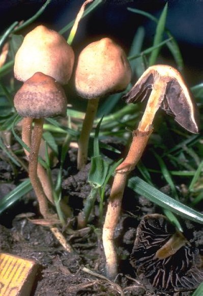 Spids nøgenhat (Psilocybe semilanceata) ⃪ Dette billede mangler i bogen nedenfor; men du kan downloadde billedet ved at klikke på det med højre musetast, og vælge "gem som" | ||||||||